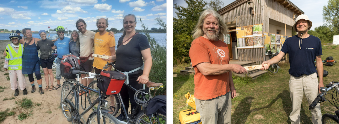Die Wandelreise des Global Ecovillage Networks Deutschland führte von 01. – 03.09.2022 durchs Elbe Valley. An zwei Stationen gab es einen interessanten Austausch zwischen den Wandelreisenden und Daniela Weinand und Isabella Tober vom Elbe Valley Team. Wie auf der Wandelreise spielt auch im Elbe Valley die Idee des Weitergebens und der Vernetzung eine große Rolle. Hierfür wurde ein metaphorischer Staffelstab an den Landesgrenzen, die das Elbe Valley vereinen, übergeben. Der Staffelstab wanderte so von der Altmark in Hoyersburg bis in den Landkreis Ludwigslust-Parchim nach Wangelin zum Bildungszentrum für Nachhaltigkeit. Wir hoffen, dass durch die Aktivitäten im WIR!-Bündnis Elbe Valley in den nächsten Jahren viele neue Ideen und Projekte entstehen und umgesetzt werden, mit denen ein sozial-ökologischer Wandel in der Region aktiv unterstützt wird.
